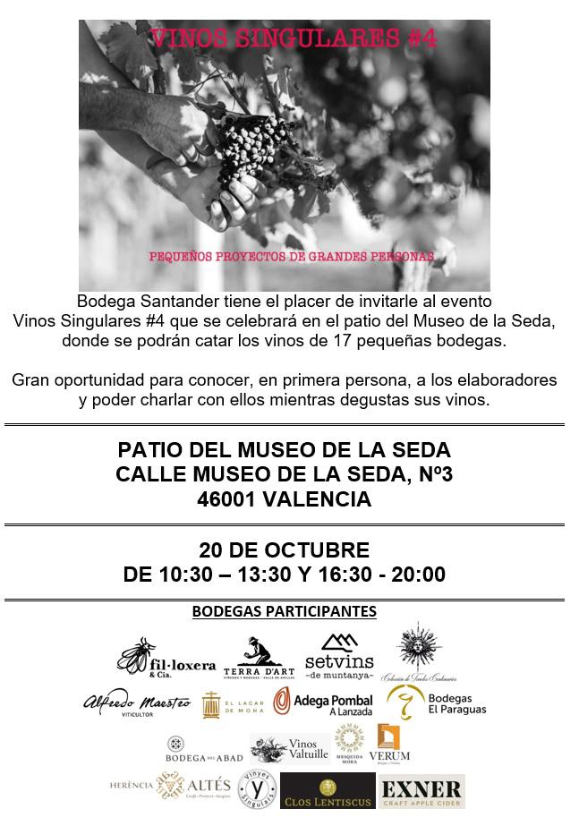 Bodegas Verum participará en la cuarta edición de Vinos Singulares, un encuentro dedicado a pequeños proyectos vitivinícolas con grandes historias. El salón está organizado por nuestro distribuidor en Valencia: Bodega Santander.